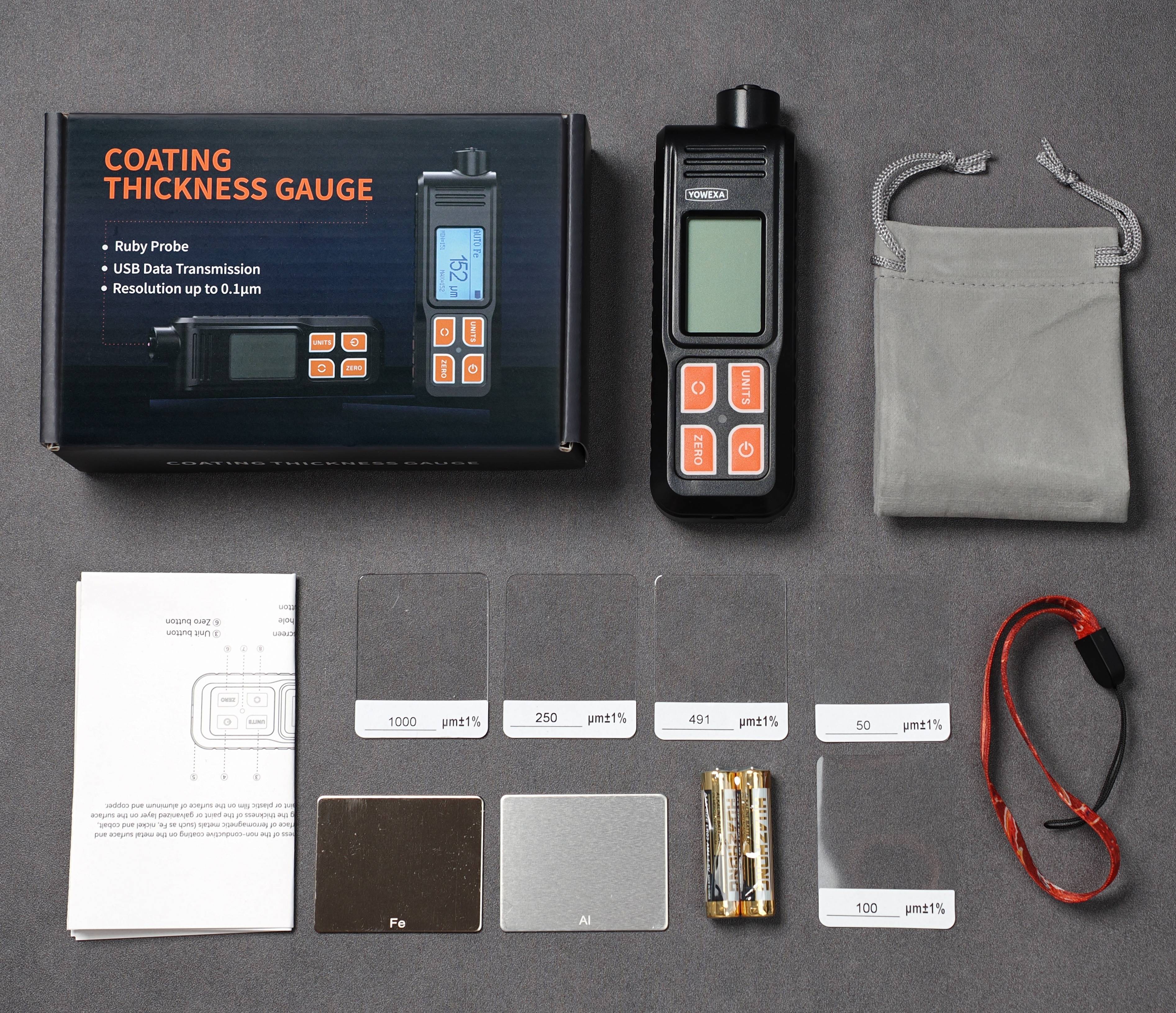 The EC-370A and EC-370B thickness gauge has a built-in magnetic induction and eddies current effect integrated probe, which can non-destructively measure the thickness of non-conductive coatings on metal surfaces and non-ferromagnetic metal coatings on ferromagnetic metals (such as iron, nickel, cobalt). Specific uses include measuring the thickness of the paint or galvanized layer on the surface of iron and stainless steel and the thickness of the paint or plastic film on the surface of aluminum and copper.